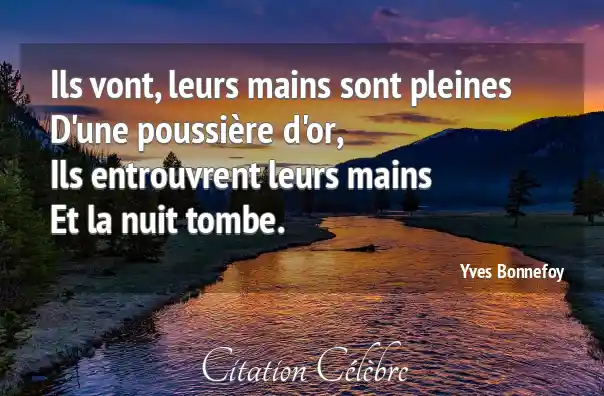 Ils vont, leurs mains sont pleinesD'une poussière d'or,Ils entrouvrent leurs mainsEt la nuit tombe.