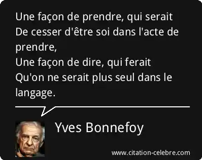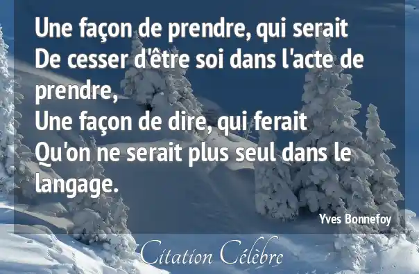 Une façon de prendre, qui seraitDe cesser d'être soi dans l'acte de prendre,Une façon de dire, qui feraitQu'on ne serait plus seul dans le langage.