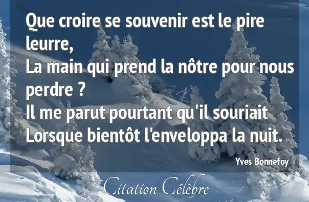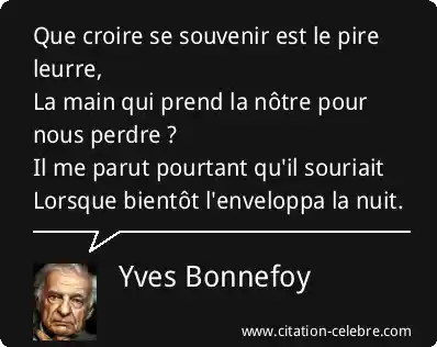 Que croire se souvenir est le pire leurre,La main qui prend la nôtre pour nous perdre ?Il me parut pourtant qu'il souriaitLorsque bientôt l'enveloppa la nuit.