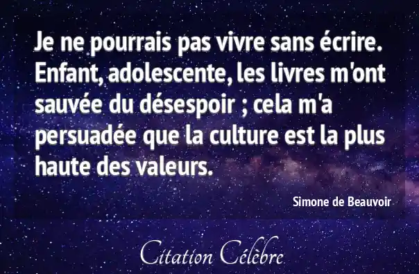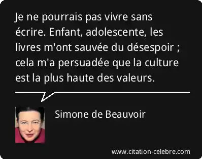 Je ne pourrais pas vivre sans écrire. Enfant, adolescente, les livres m'ont sauvée du désespoir ; cela m'a persuadée que la culture est la plus haute des valeurs.