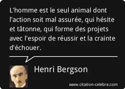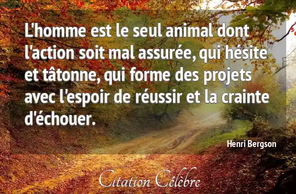 L'homme est le seul animal dont l'action soit mal assurée, qui hésite et tâtonne, qui forme des projets avec l'espoir de réussir et la crainte d'échouer.