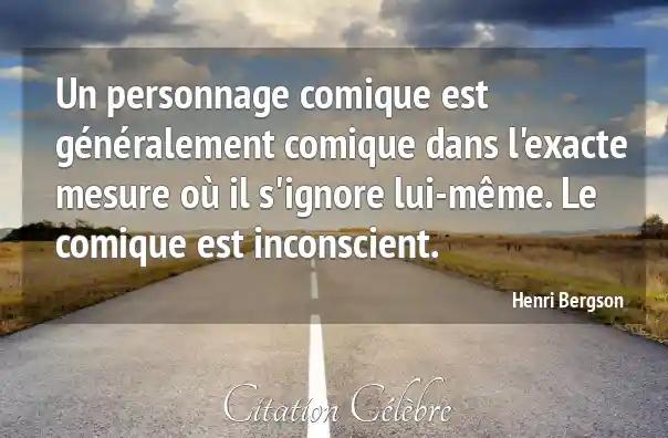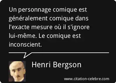 Un personnage comique est généralement comique dans l'exacte mesure où il s'ignore lui-même. Le comique est inconscient.