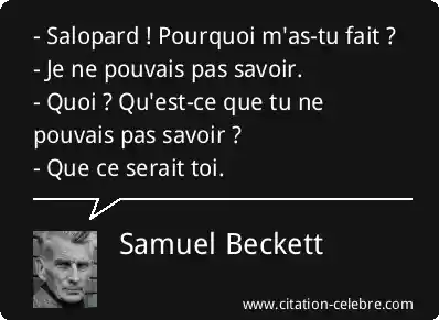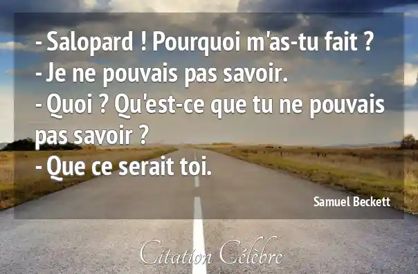 - Salopard ! Pourquoi m'as-tu fait ?- Je ne pouvais pas savoir.- Quoi ? Qu'est-ce que tu ne pouvais pas savoir ?- Que ce serait toi.