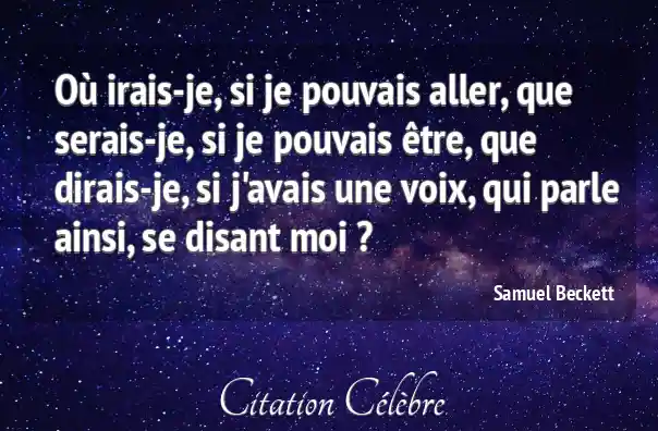 Où irais-je, si je pouvais aller, que serais-je, si je pouvais être, que dirais-je, si j'avais une voix, qui parle ainsi, se disant moi ?