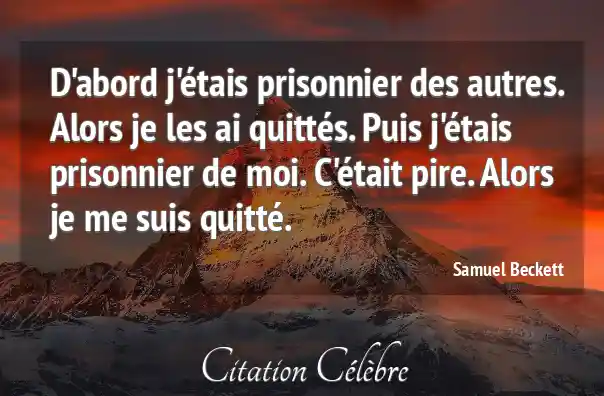 D'abord j'étais prisonnier des autres. Alors je les ai quittés. Puis j'étais prisonnier de moi. C'était pire. Alors je me suis quitté.