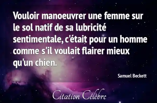 Vouloir manoeuvrer une femme sur le sol natif de sa lubricité sentimentale, c'était pour un homme comme s'il voulait flairer mieux qu'un chien.