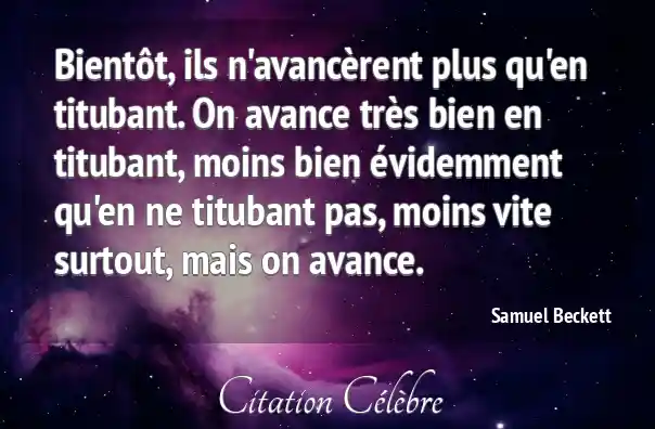 Bientôt, ils n'avancèrent plus qu'en titubant. On avance très bien en titubant, moins bien évidemment qu'en ne titubant pas, moins vite surtout, mais on avance.