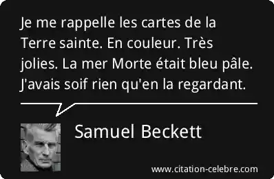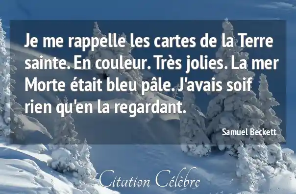 Je me rappelle les cartes de la Terre sainte. En couleur. Très jolies. La mer Morte était bleu pâle. J'avais soif rien qu'en la regardant.
