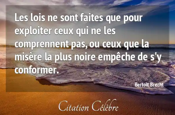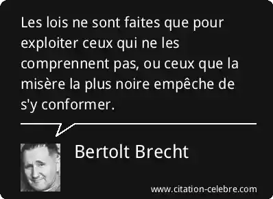 Les lois ne sont faites que pour exploiter ceux qui ne les comprennent pas, ou ceux que la misère la plus noire empêche de s'y conformer.
