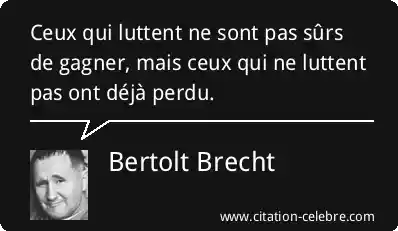 Ceux qui luttent ne sont pas sûrs de gagner, mais ceux qui ne luttent pas ont déjà perdu.