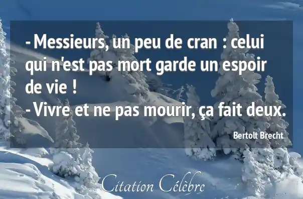 - Messieurs, un peu de cran : celui qui n'est pas mort garde un espoir de vie !- Vivre et ne pas mourir, ça fait deux.