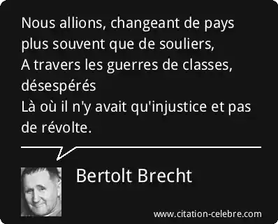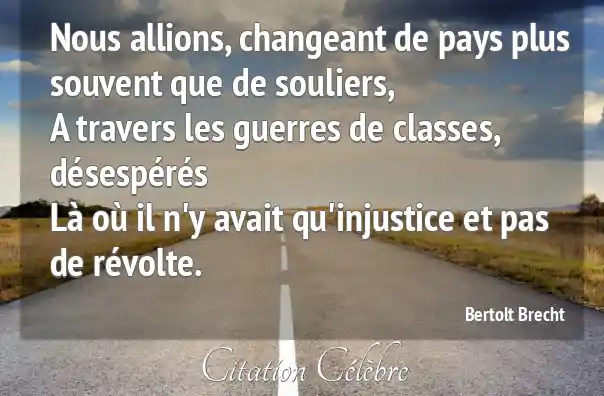Nous allions, changeant de pays plus souvent que de souliers,A travers les guerres de classes, désespérésLà où il n'y avait qu'injustice et pas de révolte.