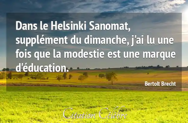 Dans le Helsinki Sanomat, supplément du dimanche, j'ai lu une fois que la modestie est une marque d'éducation.