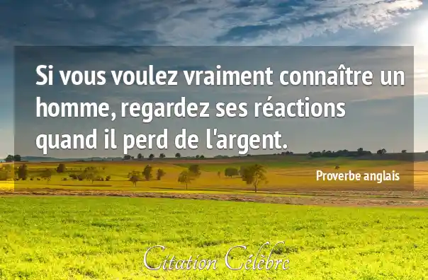 Si vous voulez vraiment connaître un homme, regardez ses réactions quand il perd de l'argent.
