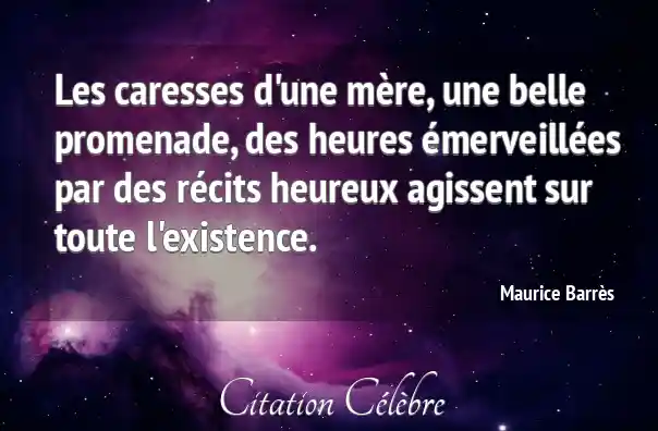 Les caresses d'une mère, une belle promenade, des heures émerveillées par des récits heureux agissent sur toute l'existence.