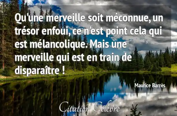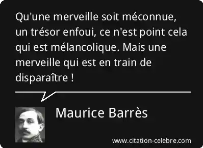 Qu'une merveille soit méconnue, un trésor enfoui, ce n'est point cela qui est mélancolique. Mais une merveille qui est en train de disparaître !