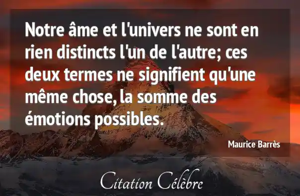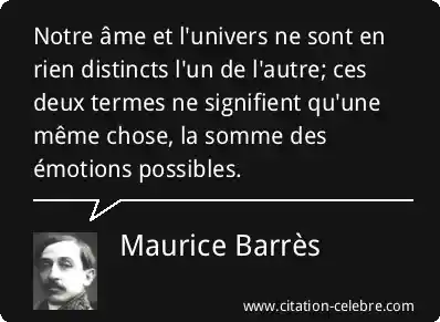 Notre âme et l'univers ne sont en rien distincts l'un de l'autre; ces deux termes ne signifient qu'une même chose, la somme des émotions possibles.