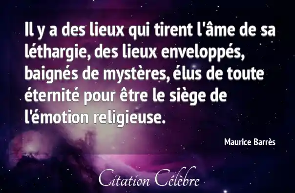Il y a des lieux qui tirent l'âme de sa léthargie, des lieux enveloppés, baignés de mystères, élus de toute éternité pour être le siège de l'émotion religieuse.