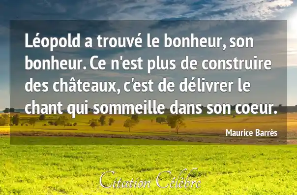 Léopold a trouvé le bonheur, son bonheur. Ce n'est plus de construire des châteaux, c'est de délivrer le chant qui sommeille dans son coeur.