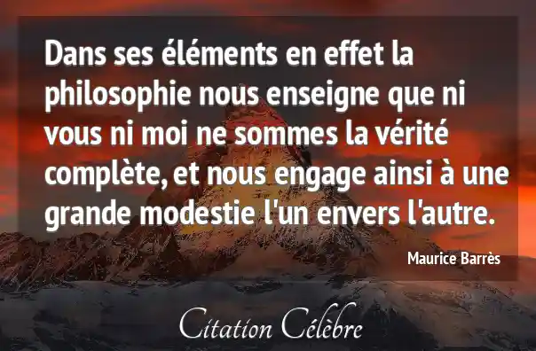 Dans ses éléments en effet la philosophie nous enseigne que ni vous ni moi ne sommes la vérité complète, et nous engage ainsi à une grande modestie l'un envers l'autre.