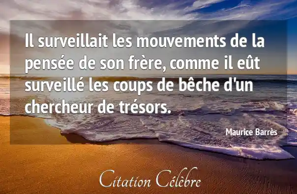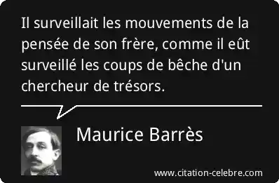 Il surveillait les mouvements de la pensée de son frère, comme il eût surveillé les coups de bêche d'un chercheur de trésors.