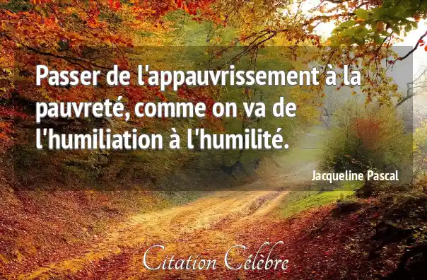 Passer de l'appauvrissement à la pauvreté, comme on va de l'humiliation à l'humilité.