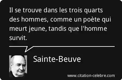 Il se trouve dans les trois quarts des hommes, comme un poète qui meurt jeune, tandis que l'homme survit.