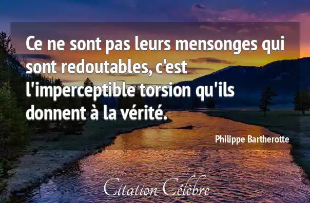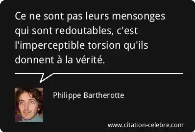 Ce ne sont pas leurs mensonges qui sont redoutables, c'est l'imperceptible torsion qu'ils donnent à la vérité.