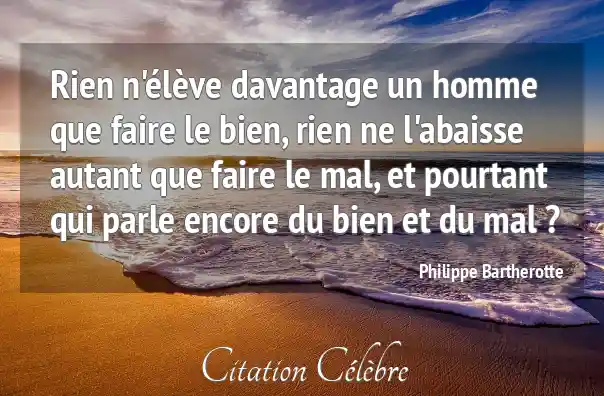 Rien n'élève davantage un homme que faire le bien, rien ne l'abaisse autant que faire le mal, et pourtant qui parle encore du bien et du mal ?