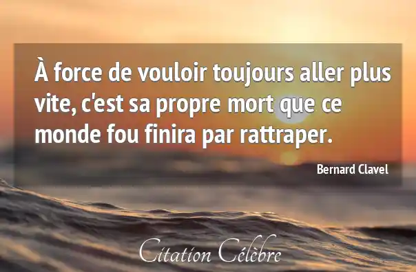 À force de vouloir toujours aller plus vite, c'est sa propre mort que ce monde fou finira par rattraper.