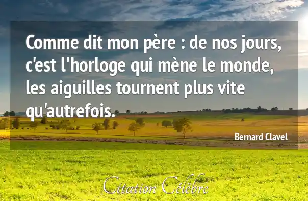 Comme dit mon père : de nos jours, c'est l'horloge qui mène le monde, les aiguilles tournent plus vite qu'autrefois.