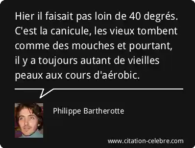Hier il faisait pas loin de 40 degrés. C'est la canicule, les vieux tombent comme des mouches et pourtant, il y a toujours autant de vieilles peaux aux cours d'aérobic.