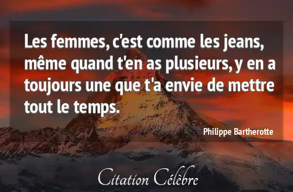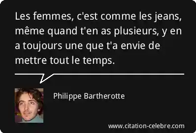 Les femmes, c'est comme les jeans, même quand t'en as plusieurs, y en a toujours une que t'a envie de mettre tout le temps.
