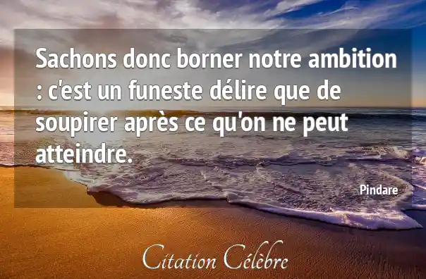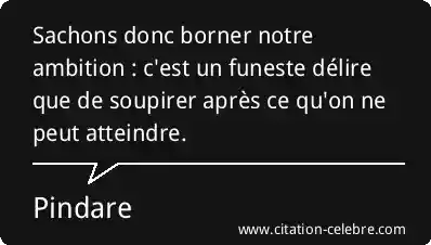 Sachons donc borner notre ambition : c'est un funeste délire que de soupirer après ce qu'on ne peut atteindre.