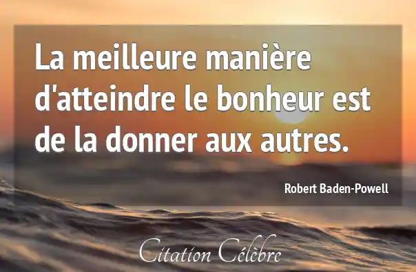 La meilleure manière d'atteindre le bonheur est de la donner aux autres.