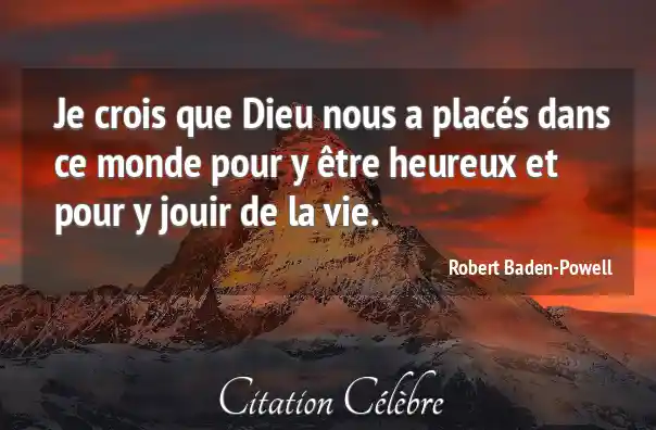 Je crois que Dieu nous a placés dans ce monde pour y être heureux et pour y jouir de la vie.