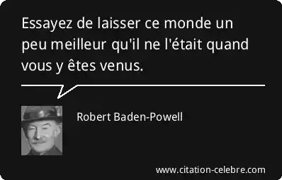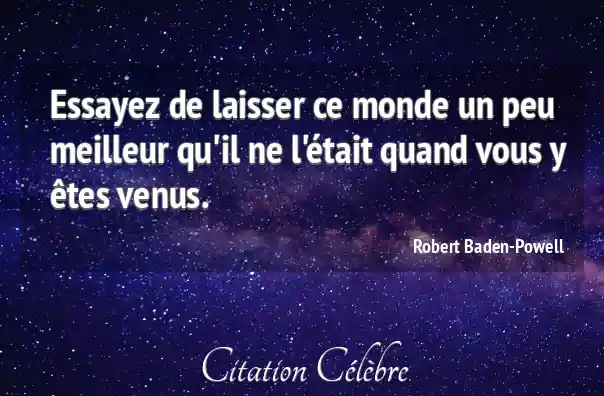Essayez de laisser ce monde un peu meilleur qu'il ne l'était quand vous y êtes venus.