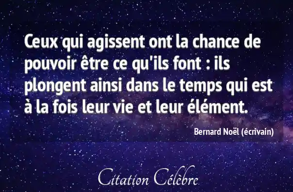 Ceux qui agissent ont la chance de pouvoir être ce qu'ils font : ils plongent ainsi dans le temps qui est à la fois leur vie et leur élément.