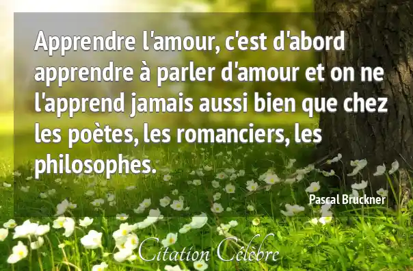 Apprendre l'amour, c'est d'abord apprendre à parler d'amour et on ne l'apprend jamais aussi bien que chez les poètes, les romanciers, les philosophes.