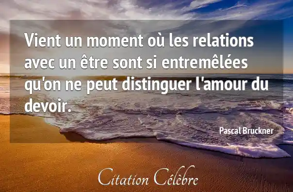 Vient un moment où les relations avec un être sont si entremêlées qu'on ne peut distinguer l'amour du devoir.