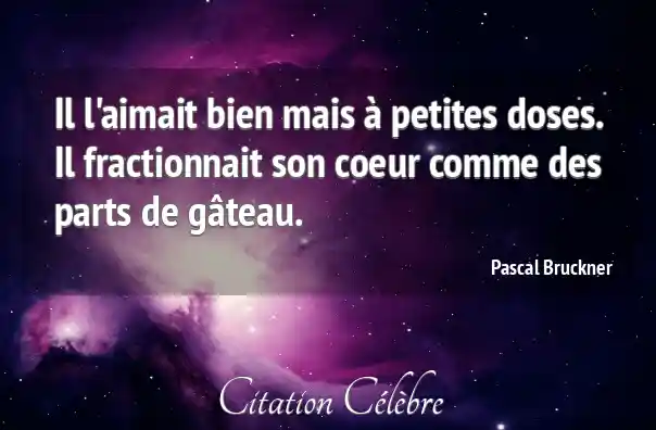 Il l'aimait bien mais à petites doses. Il fractionnait son coeur comme des parts de gâteau.