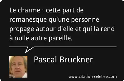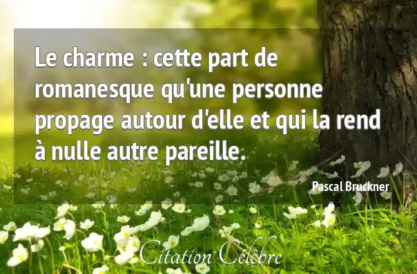 Le charme : cette part de romanesque qu'une personne propage autour d'elle et qui la rend à nulle autre pareille.