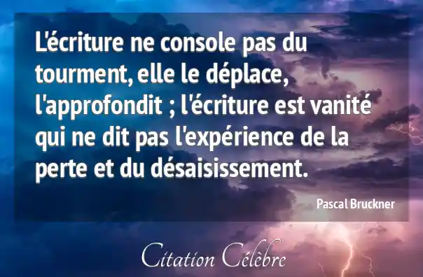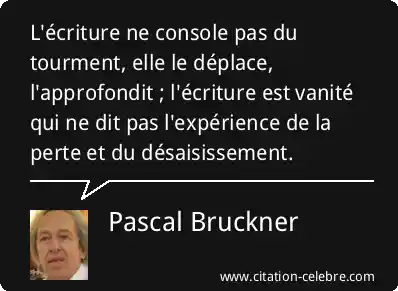 L'écriture ne console pas du tourment, elle le déplace, l'approfondit ; l'écriture est vanité qui ne dit pas l'expérience de la perte et du désaisissement.
