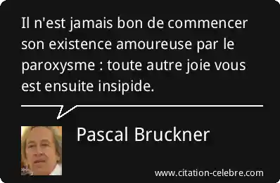 Il n'est jamais bon de commencer son existence amoureuse par le paroxysme : toute autre joie vous est ensuite insipide.