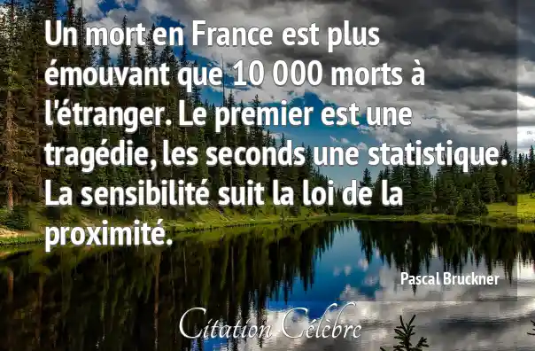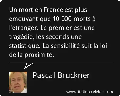 Un mort en France est plus émouvant que 10 000 morts à l'étranger. Le premier est une tragédie, les seconds une statistique. La sensibilité suit la loi de la proximité.
