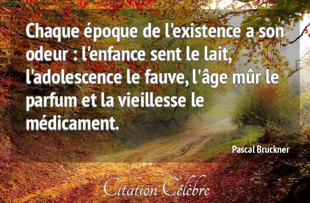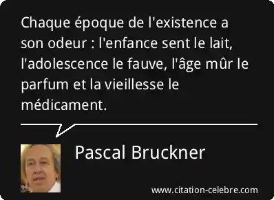 Chaque époque de l'existence a son odeur : l'enfance sent le lait, l'adolescence le fauve, l'âge mûr le parfum et la vieillesse le médicament.