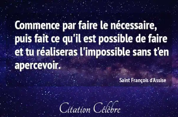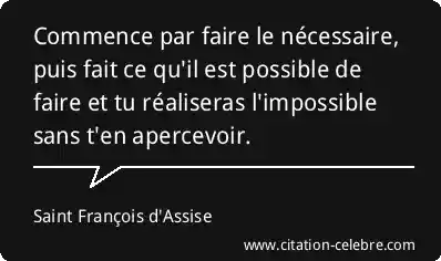 Commence par faire le nécessaire, puis fait ce qu'il est possible de faire et tu réaliseras l'impossible sans t'en apercevoir.