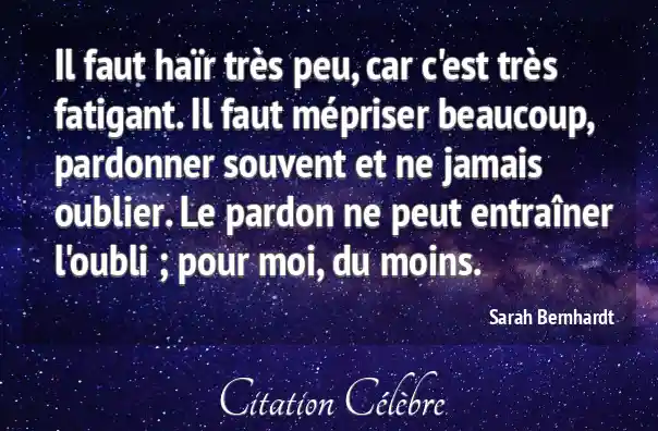 Il faut haïr très peu, car c'est très fatigant. Il faut mépriser beaucoup, pardonner souvent et ne jamais oublier. Le pardon ne peut entraîner l'oubli ; pour moi, du moins.