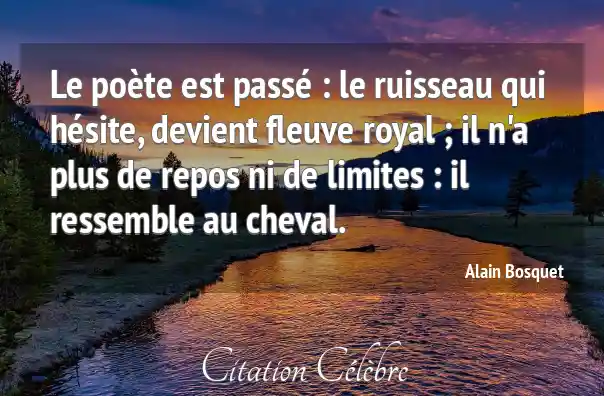 Le poète est passé : le ruisseau qui hésite, devient fleuve royal ; il n'a plus de repos ni de limites : il ressemble au cheval.