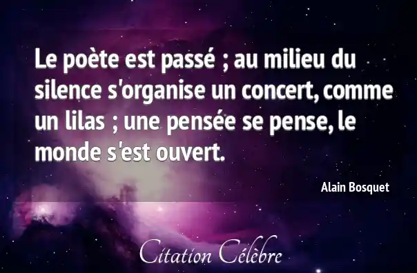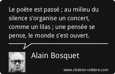 Le poète est passé ; au milieu du silence s'organise un concert, comme un lilas ; une pensée se pense, le monde s'est ouvert.